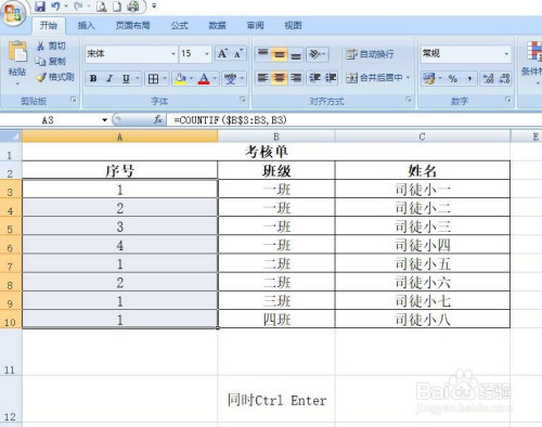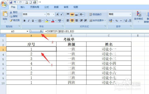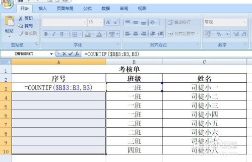 输入函数公式=COUNTIF($B$3:B3,B3)。