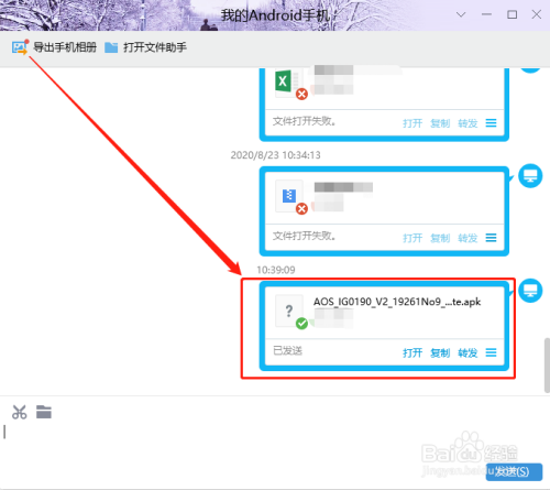4、将apk文件经由过程电脑版QQ发送到“我的手机”