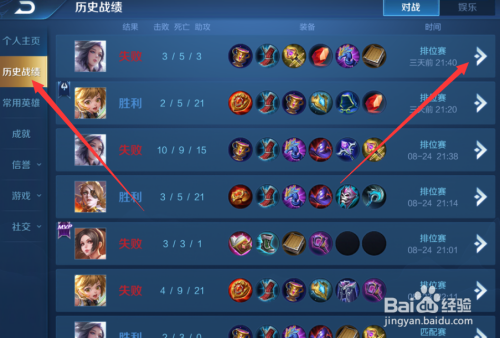 进入后在左侧选择汗青战绩,点击打开此中一场对战。