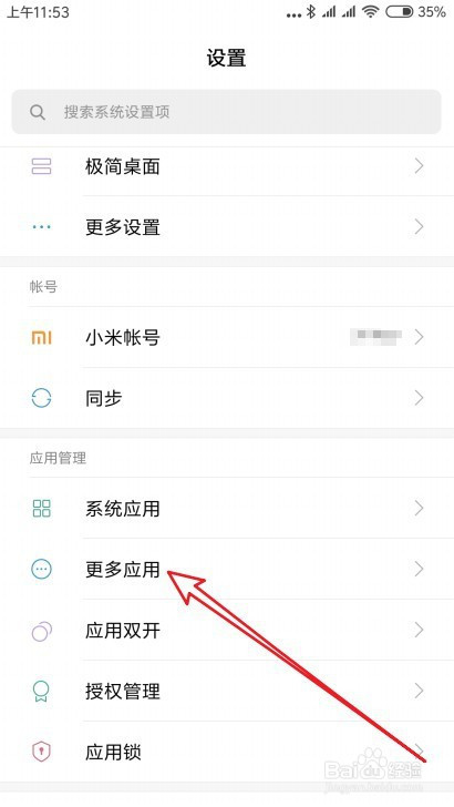 接下来在打开的手机设置页面,点击更多应用的菜单。