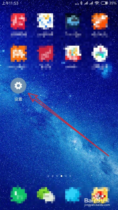 首先解锁手机桌面,然后在屏幕上点击设置的图标。