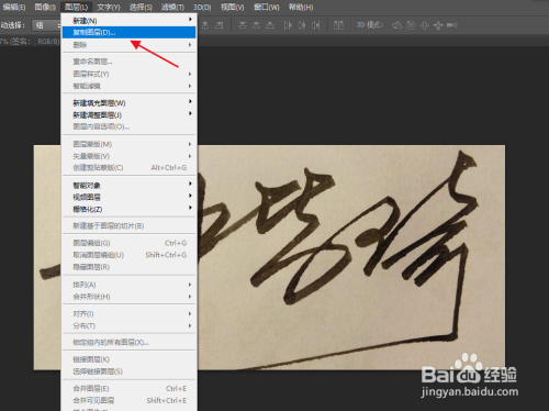 将签名图片裁剪后选择复制图层。