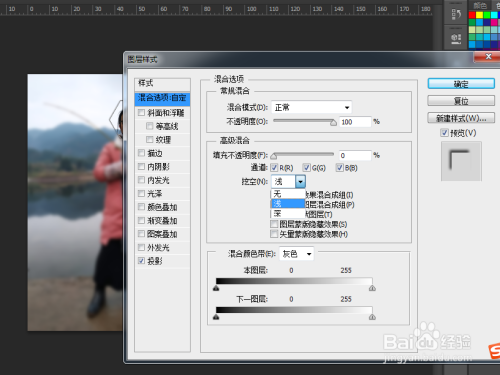 双击图层,进入图层样式,填充不透明度设置为0,挖空设置为浅,勾选投影;