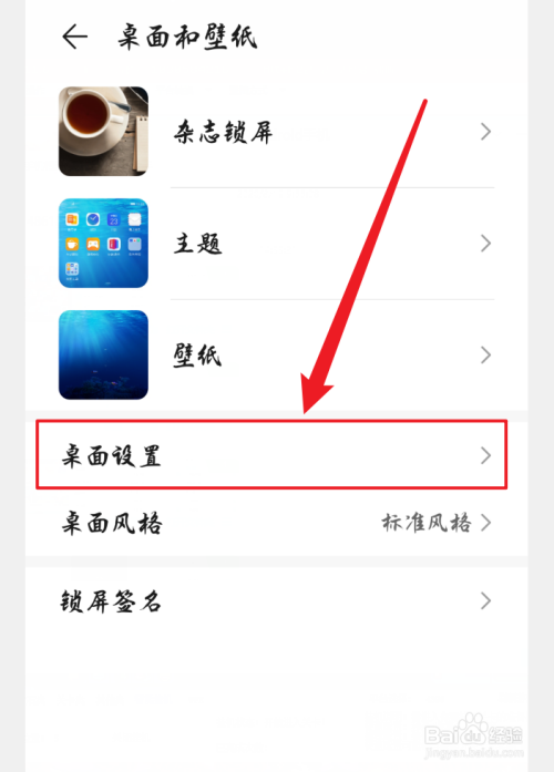 然后在设置中找到【桌面和壁纸】选项。