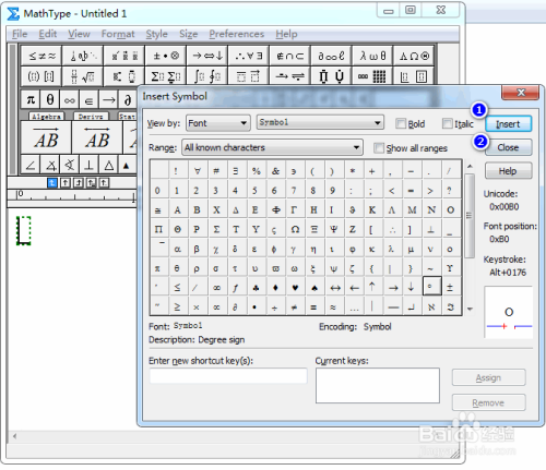 在符号面板中,找到并点中度符号,具体如图所示: