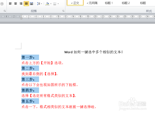 点击一下,格局相近似的文本就被一键选择啦。