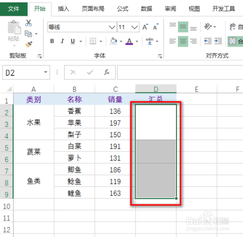 首先,选中要乞降的所有归并单位格,具体如图所示: