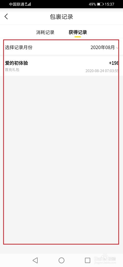 第五步点击获得记实,我们也可以看到包裹的获得记实,按照需要查看