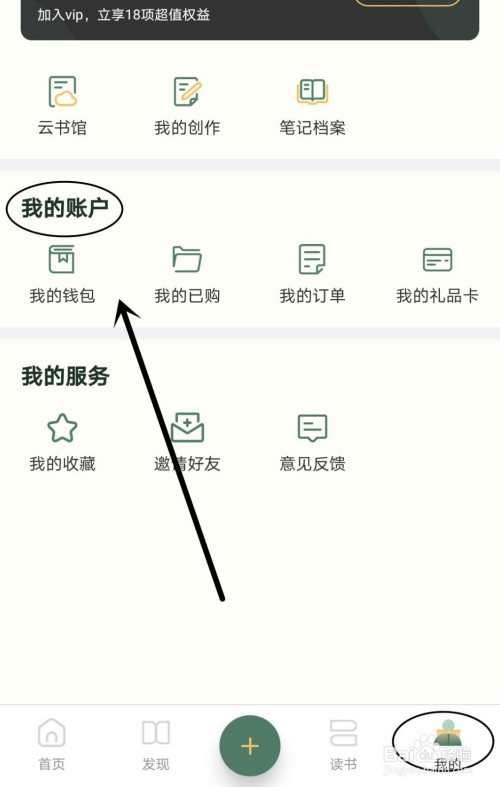 在其下面的四个选项中点击“我的钱包”。