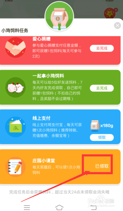 3、打开饲料使命面板点击下方的【庄园小讲堂】选项。