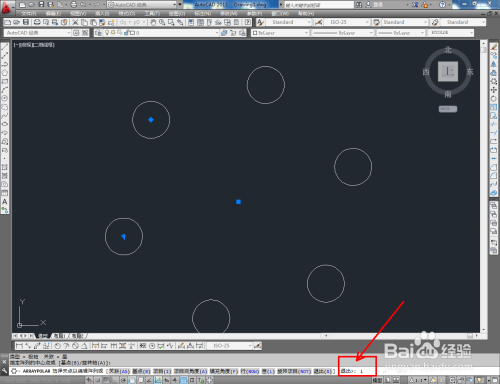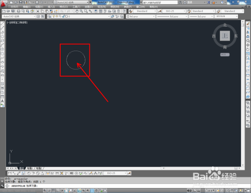 点击右边东西栏中【环形阵列】,框选图示圆形图案并点击空格键确认;’