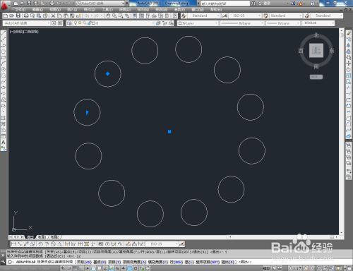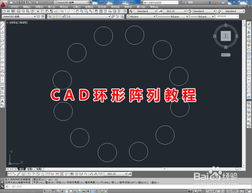 鼠标左键点击图示作图区域,确定一个环形阵列中间点后,在号令栏中输入:i并按下空格键,继续输入这列数值:12并按下空格键确认,完当作环形阵列即可。CAD环形阵列教程的所有介绍。