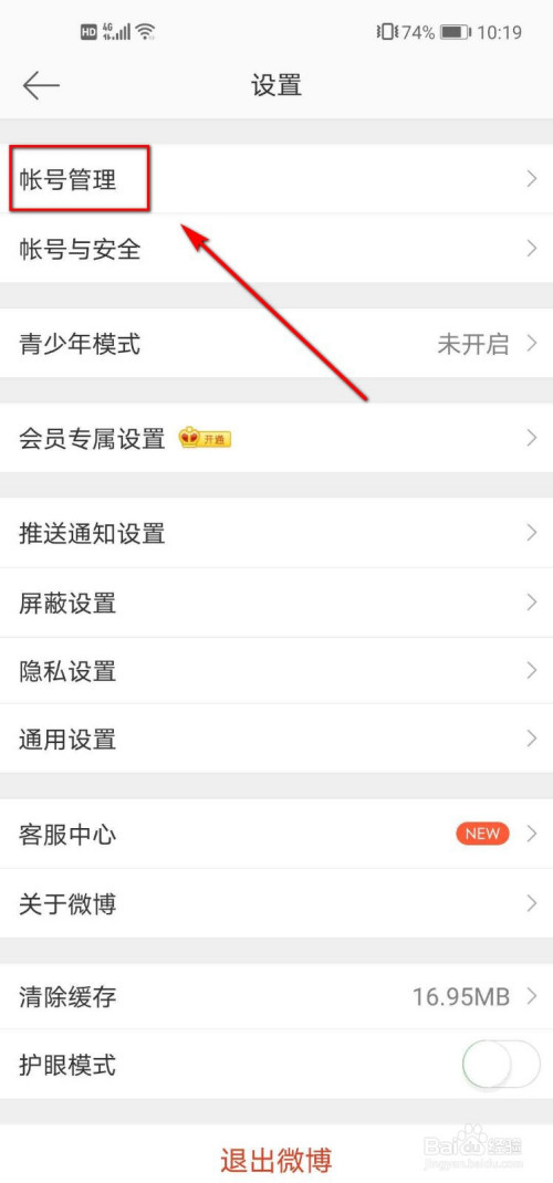 切换到帐号办理页面,我们点击打开【退出当前帐号】选项。