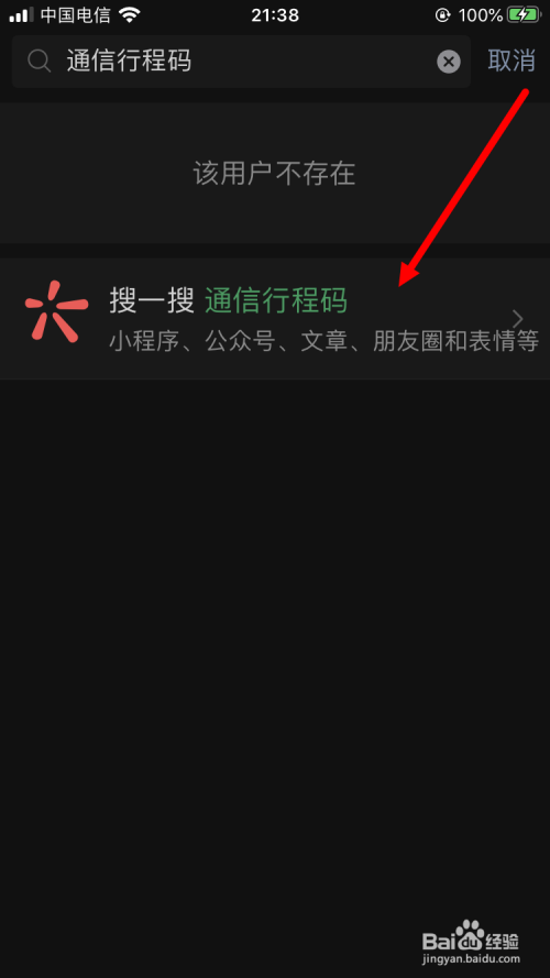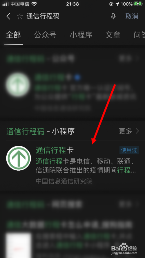 5、在搜刮成果中,点击【通信行程码-小程序】;