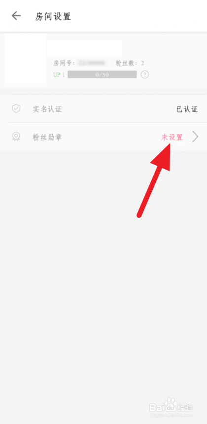 进入房间设置,点击【粉丝勋章】右侧的【未设置】。