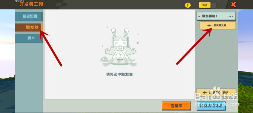 在弹出来的选项框中点击【触发器】,再在右侧点击【新建触发器】。