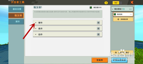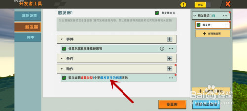 选好今后,在触发器这里点击【触发事务的玩家】。