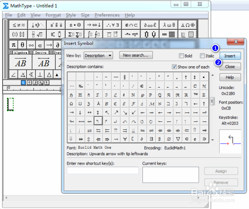 在符号面板中,找到并点中左上弯箭头符号,具体如图所示: