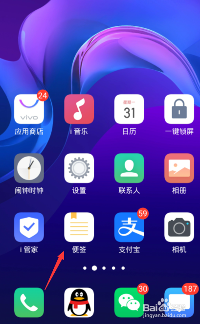1、手机打开vivo手机内置的便签功能。