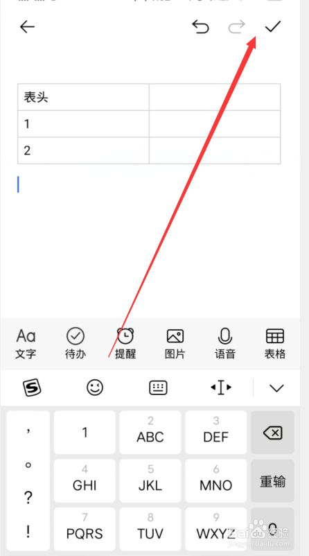 6、进入便签界面点击右上角的对号选项保留便签即可。