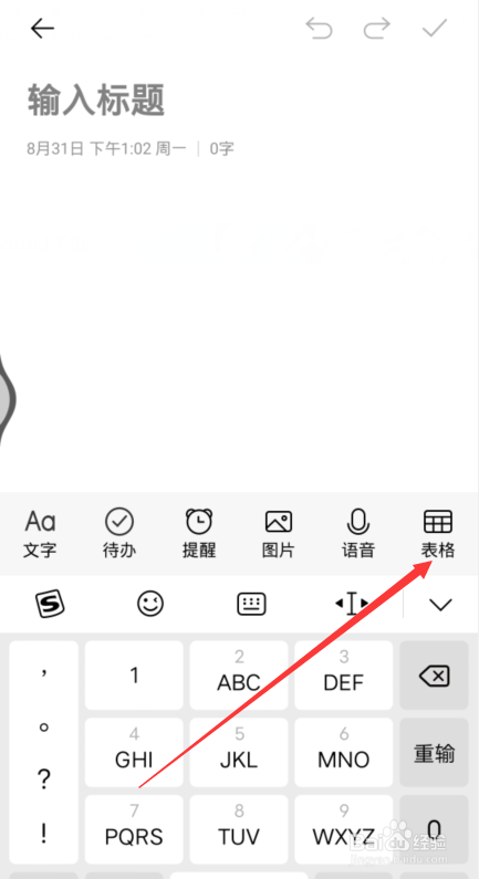 点击新建便签按钮点击右上角【表格】选项。