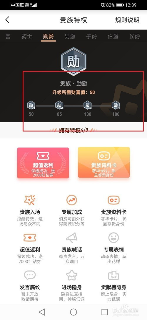 第四步进去之后,知足对应前提,可以看到贵族特权