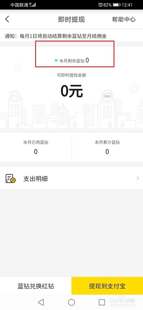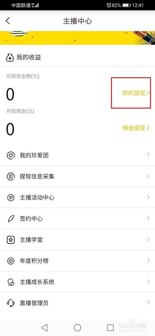第五步进去本家儿播中间之后,点击提现,可以看到获得的蓝钻