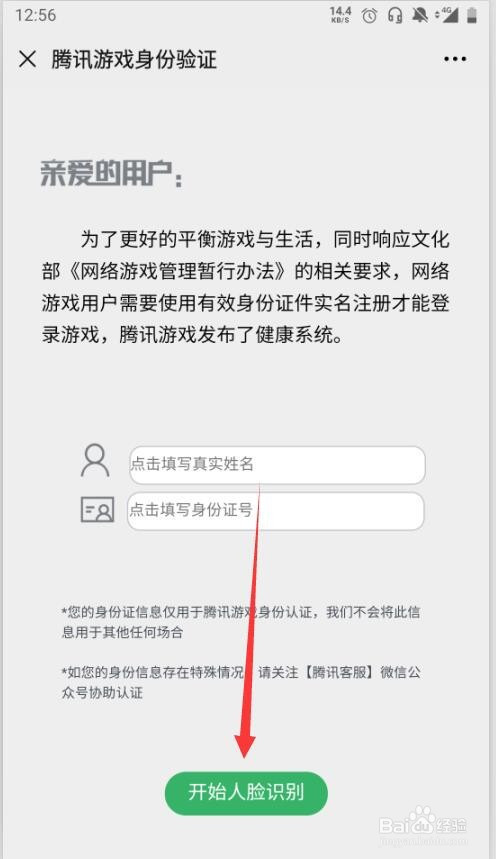 第3步授权今后,我们可以看到如图所示,需要填写小我信息,然后点击下面的人脸识别。