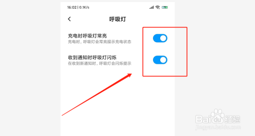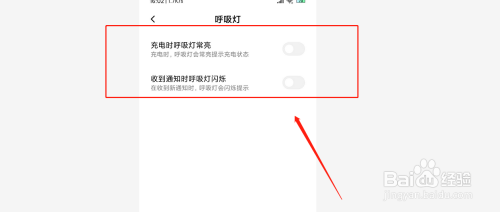 第四,当前显示呼吸灯为“开启”状况,点击按钮,封闭手机呼吸灯。