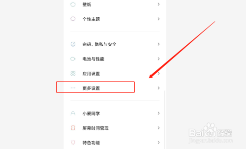 第二,在手机“设置”中找到“更多设置”,点击进入,如图。