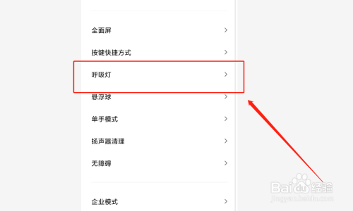 第三,在“更多设置”中找到“呼吸灯”,点击查看,如图所示。