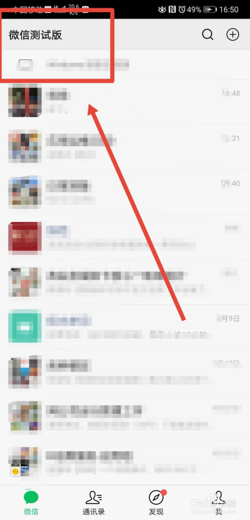 完当作安装后,回到微信首页,左上角会显示改版本为测试版本,详情如下;