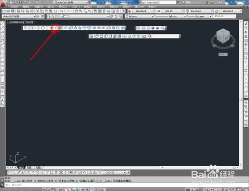 鼠标右键点击图示箭头所指区域,点击【AutoCAD】,依次勾选【建模】、【视图】以及【视觉样式】东西栏;