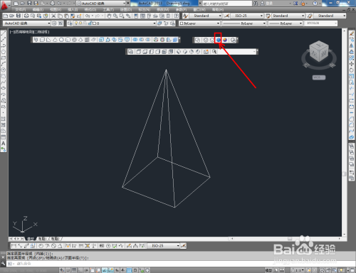 按图示绘制出棱锥体后,点击视觉样式中的【实体显示】即可。以上就是关于CAD四棱锥建造方式的所有介绍。
