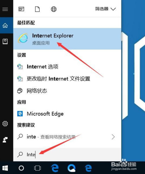 然后在小娜搜索框中输入internet explorer的关头词进行搜刮,点击搜刮成果中的最佳匹配菜单项,就可以打开IE浏览器了。