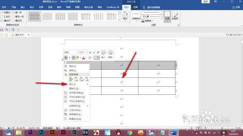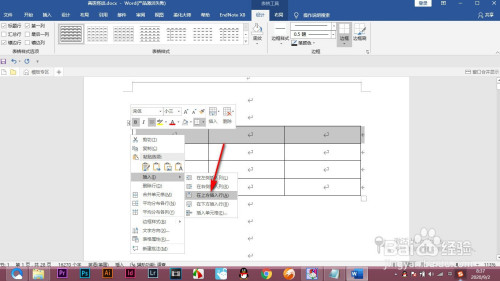1.首先我们在word中插入一个表格,要在上方插入一行。