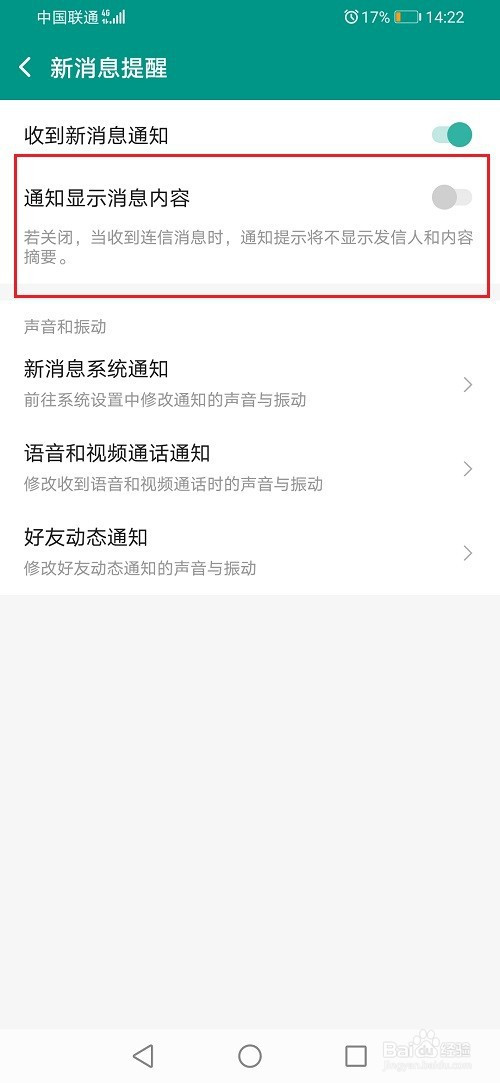 第五步点击封闭通知显示动静内容,就封闭连信通知显示动静详情了