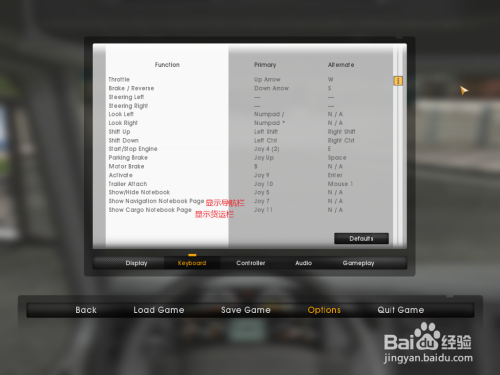 往下拉,设置游戏车辆的显示导航栏、显示货运栏。