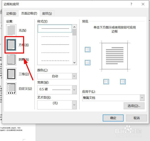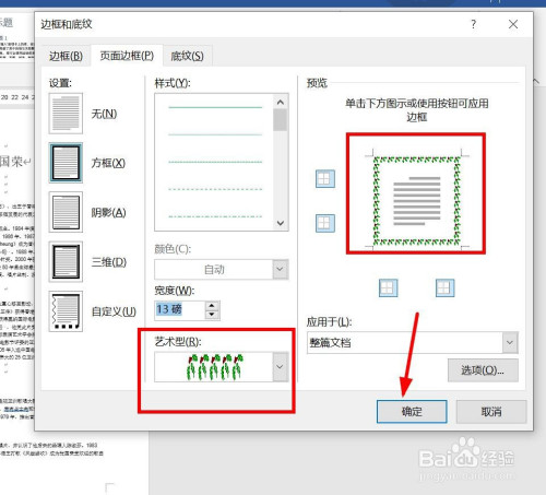 选择“艺术型”。选择一个喜好的方框样式。同时可以调节一下宽度。预览边框的样式。点击确定。