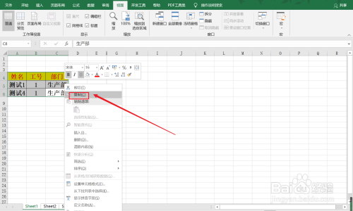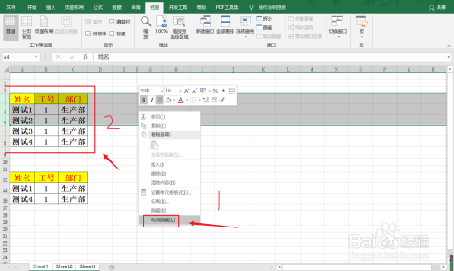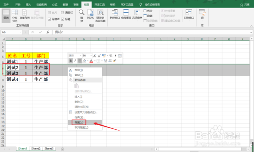 【2】选中第6和第7行单位格,右键点击埋没按钮