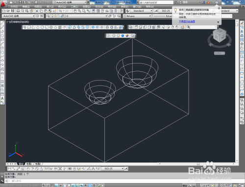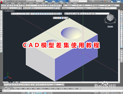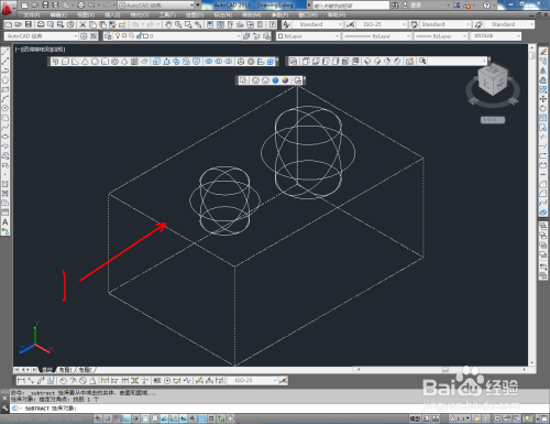 点击建模东西栏中的【差集】,选中长方体并按下空格键确认后,依次拾取两球体模子即可。以上就是关于CAD模子差集利用的所有介绍。