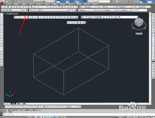 点击视图东西栏中的【西南等轴测视图】将视图界面切换为西南视图。点击【长方体东西】按图示绘制一个长方体模子;