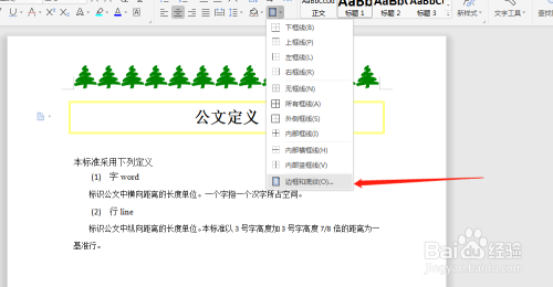 点击边框和底纹。