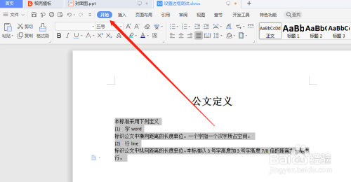 选中文本。