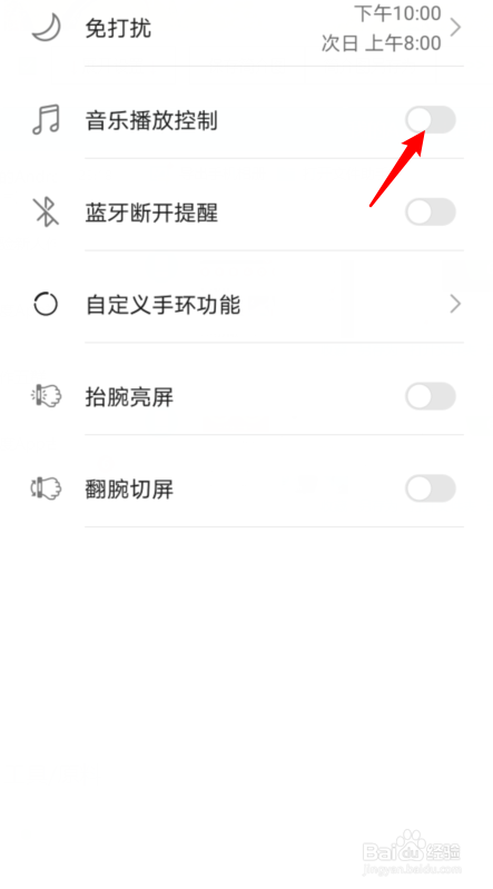 之后,选择音乐播放节制后方的开关。