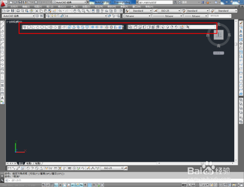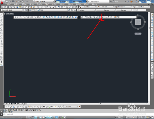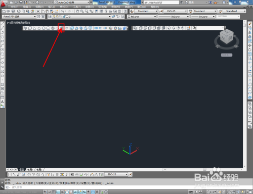 鼠标右键点击图示箭头所指区域,点击【AutoCAD】,依次勾选【建模】和【视图】东西栏;