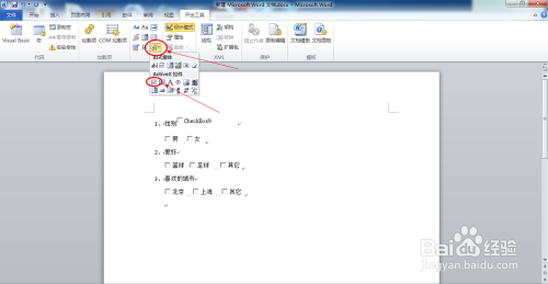 进入开辟东西菜单,点击一下“设计模式”将文档变为设计模式状况,文档在设计模式下才能插入、点窜复选框等控件。