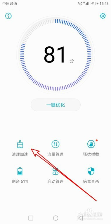 然后在打开的手机管家本家儿界面,点击清理加快的图标。