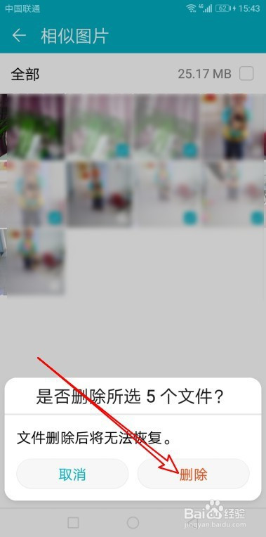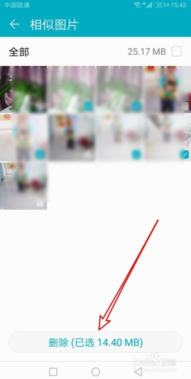这时会打开相似图片页面,勾选要删除的图片后,点击下面的删除按钮。