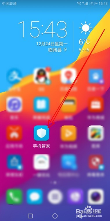 解锁手机屏幕后摆布滑动,点击手机管家的图标。